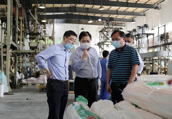 来访期间,中石化领导一行在韩新伟等陪同下考察了新光公司,参观了新光公司农膜生产车间、仓库,详细询问农膜产品的生产工艺流程、农膜生产、原料供应、库存储备情况,零距离了解中石化产品在生产一线的使用情况。