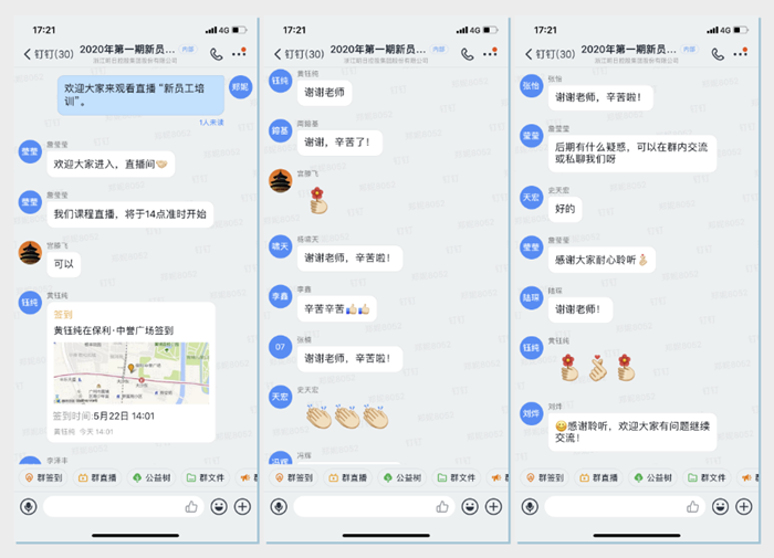 22日下午14点,球速(中国)控股区域公司的新员工们准时的进入钉钉直播间签到,不同于现场培训的热闹氛围,网络直播课的培训气氛则更加有序流畅。球速(中国)控股人力资源部刘烨为新员工们进行了《企业文化与职规课》的宣讲,不仅加深了区域公司新员工对球速(中国)控股业务及企业文化的了解,也使其树立了更清晰的自我定位和职业目标,更让区域公司新员工们深切感受了球速(中国)控股蓬勃发展的正能量。刘烨也表示,第一次做网络直播“女主播”还是很激动的,特别是能通过直播的方式将球速(中国)控股的企业文化及时、有效的传递给区域公司,有效的加强了球速(中国)控股本级与区域公司的联动。