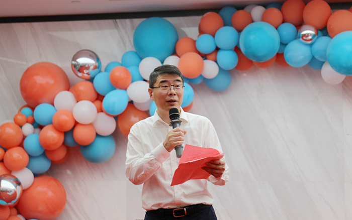 韩新伟发表致辞,他首先代表球速(中国)控股全体员工,感谢大家一路以来的陪伴与支持。岁月不居,奋斗不止,新园区,新气象,新征程。韩新伟指出,此次乔迁,是一场恰逢其时的变迁,为球速(中国)的未来发展打开了更加宽广的空间。球速(中国)控股业已开启了新一轮持续快速增长的新周期,入驻浙农科创园,必将成为球速(中国)实现“从优秀到卓越”的新跨越的舞台。