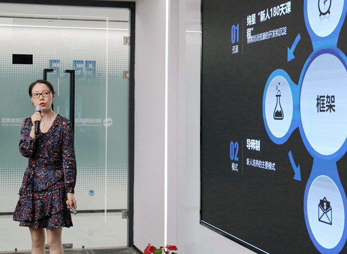 人力资源部经理助理刘烨作了题为《新人培育》的主题分享,她首先通过数据分析了当前球速(中国)控股集团及各部门团队新人留存现状,介绍了由“新人180天课程”、入职新人分享会、导师制、入职培训+轮岗等机制组成的新人培育框架,并指出公司在培育体系呈现的不平衡性,以及导师制实施的进步与不足。她从“选-育-评”角度详细论述了新人培育三段论。