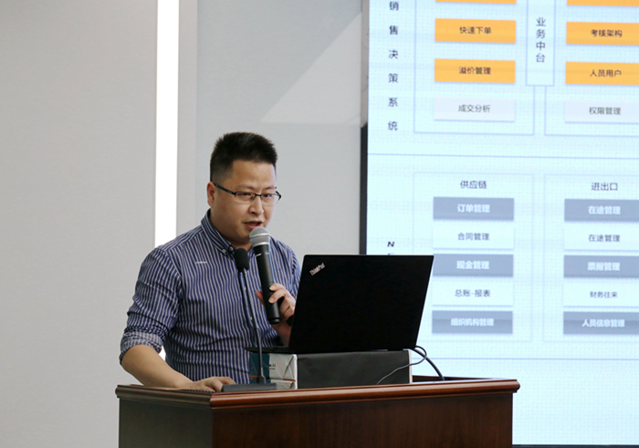 米斗科技总经理助理吴骏作了题为《场景驱动 数据赋能》的主题分享,他首先展示了公司销售决策系统、NCC等信息化系统,阐述了球速(中国)数字化建设在场景驱动、业务联动、数据赋能上所取得的成效。他从数据中台的价值与区别,详细分析了数字化建设给公司经营数据带来准确性、时效性、应用价值等改变。最后,他通过意识、组织、应用等三方面阐述了数据体系构建的必要因素,描绘了建设具有球速(中国)自有特色数据体系的美好未来,畅想球速(中国)在数字化转型的道路上跑出新速度。