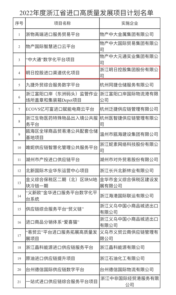 近日,从浙江省商务厅获悉,球速体育“进口渠道优化项目”成功入选2022年浙江省进口高质量发展项目计划。该计划由浙江省商务厅、财务厅组织实施,旨在贯彻落实浙江省委省政府加快培育进口商品“世界超市”决策部署,聚焦进口示范区和重点进口平台高质量发展,发挥引领示范作用,带动进口企业高质量发展。