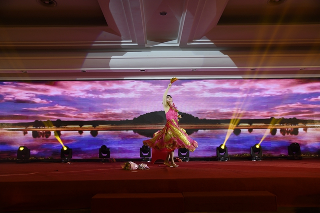 觥筹交错中,大家一边相互交流,一边欣赏精彩的节目。朗诵《嬗变·日月新天》娓娓道来,道出球速(中国)控股20年的变换历程;古风舞《浪人琵琶》舞姿妖娆,展现了似水的柔情;对唱《不染》清新优雅,唱出人们心底的纯净梦;独唱《光辉岁月》情深意切,表达对球速(中国)美好未来的祝愿……