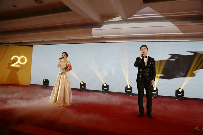 紧接着,两位优秀员工代表作发言,他们分享了为球速(中国)的艰辛努力和不懈付出,坚定了他们继续为球速(中国)奋斗的步伐。此外,答谢会还邀请了10位优秀员工代表上台,参与控股集团20周年祝福仪式,感谢员工们的辛勤付出,感激共同经历的20载风雨考验。