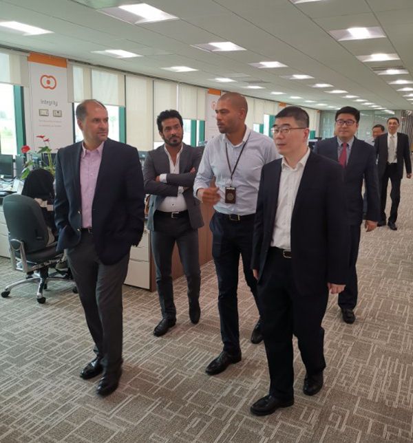 会后,在阿美总裁易卜拉辛的带领介绍下,控股集团一行参观了阿美新入驻的办公楼,与各业务、内勤人员亲切交谈。