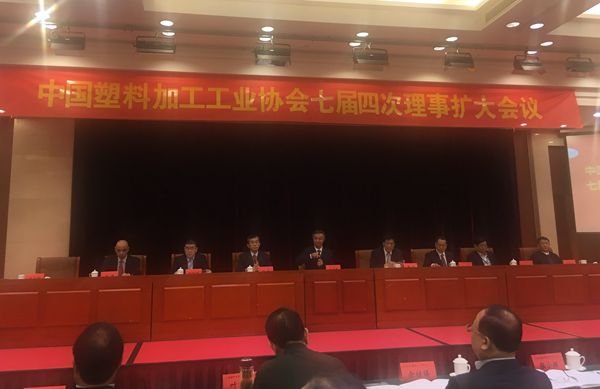 5月20日上午,中国塑料加工工业协会七届四次理事扩大会议在广州珠江宾馆三楼多功能厅举行,协会理事长朱文玮、专职副理事长曹俭、马占峰、王占杰(兼秘书长),及协会副理事长、浙江省塑料行业协会会长兼公司董事长韩新伟等出席会议,并在主席台就座,全国各省市塑料协会会长、秘书长及中塑协理事参加会议。