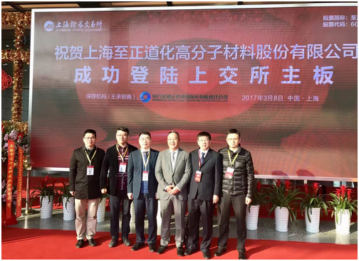 3月8日,公司董事长兼浙江省塑料行业协会会长韩新伟、控股子公司浙江球速(中国)石化有限公司副总经理俞欣受邀参加上海至正道化高分子材料股份有限公司(简称:至正股份,代码:603991)在上海证券交易所举行的主板上市仪式。