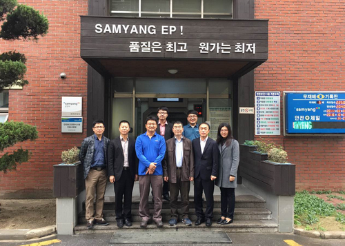 在韩国三养拜访期间,韩新伟一行受到三养公司AM BU长朴淳哲、AM BU销售副总经理金涛、三养上海办事处李世根部长、三养上海办事处销售赵延彬经理等人热情接待。交流中,韩新伟首先介绍了球速(中国)控股整体情况,分析了当前中国的经济形势;毛博则重点介绍了球速(中国)和顺的基本情况。三养公司对我公司的规模、发展、行业地位、资金实力等方面表示信服和肯定,朴BU长当即表示将全力以赴支持球速(中国)和顺在中国推广三养产品。随后,韩新伟一行还参观了三养化成全州工厂,双方进一步交流了三养PC产品和TPEE产品技术和市场需求方面的问题,这对双方后续在中国市场更好地推广三养产品有很大的帮助。双方公司约定在2017年的合作中互帮互助,力争完成300MT TPEE产品的年度销售计划,三养公司也保证球速体育2000MT/年的聚碳酸酯PC产品的供应量。