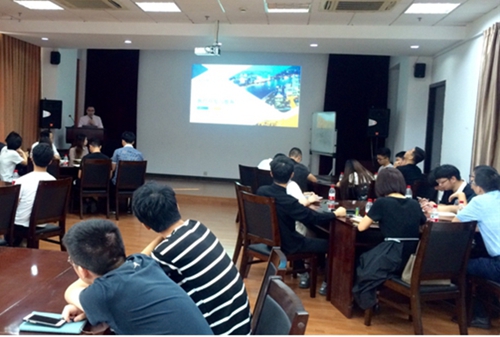 培训第一天上午,公司总经理许锦根作动员讲话,他指出,新员工首先要转变角色认识,明确自身定位和职责;二是要树立目标,诚信务实,于磨炼中成长;三是要传承球速(中国)优秀传统,发扬开拓、创新精神。随后,公司副总经理李叶萌为新员工详细介绍了公司发展历程及企业文化理念,并对新员工职业生涯规划进行指导,解答了新员工很多问题。在结束了上午培训课程后,公司董事长韩新伟与新员工进行了亲切的交流,韩新伟鼓励新员工要脚踏实地、仰望星空,要结合公司新业务模式、互联网工具的探索发展契机,将自身的成长与公司的发展相结合,充分发挥九零后员工的自身优势,做有创新精神的人。